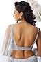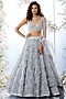 Featuring an ice blue lehenga in organza base with 3D floral, sequins, and crystals embroidery. It is paired with a matching blouse and a net dupatta.
