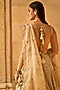 Featuring an ivory and gold lehenga in tissue raw silk base with gota patti embroidery. It is paired with a matching blouse and a powder peach dupatta in tissue organza base.