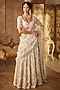 Ivory Net Pearl Embroidered Lehenga Saree Set