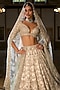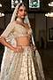 Seema Gujral presents a stunning ivory lehenga set crafted in raw silk, adorned with intricate zardosi work and crystal embroidery. This eye-catching ensemble features an embroidered blouse, paired with a delicate organza dupatta. Accentuate the look with statement jewellery and heels for weddings, engagements, or sangeet ceremonies.