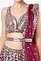 Featuring a maroon lehenga in net base with mirror embroidery. It is paired with a matching blouse and a dupatta.