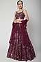Featuring a maroon lehenga in raw silk base with mirror work embroidery. It is paired with a matching blouse and an organza dupatta.