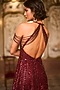 Featuring a maroon gown in net base with a halter neckline and exaggerated tassels embroidery. Style this designer gown with zircon dangler earrings, an embellished clutch and strappy heels, perfect for a evening soirees, red-carpet or high fashion events.
