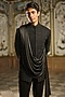 Featuring a black bandhgala in suiting and raw silk base with bugle beads and thread embroidery. It is paired with a giza cotton shirt and straight pants. Style it with sleek loafers or embroidered mojaris and a subtle statement brooch for a sharp, modern look. Perfect for cocktail evenings, wedding receptions, sangeet nights or grand festive celebrations.