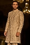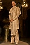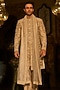 Champagne Gold Raw Silk Bead Embroidered Sherwani Set