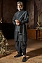 Featuring a charcoal grey bundi jacket in textured silk base with thread work, sequins and french knot embroidery. It is paired with an embroidered kurta and silk dhoti salwar pants. A style rooted in tradition is perfect for weddings, sangeet or engagement ceremonies, exuding regal charm.