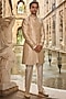 Light Beige Raw Silk Dori Embroidered Sherwani Set