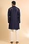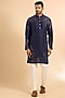 Featuring a midnight blue kurta in silk base. It is paired with pants. Style it with kolhapuri sandals for a festive occasion, cultural event, wedding or sangeet ceremony.