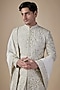 Featuring a mint green sherwani in silk base. It is paired with a kurta, pants and a dupatta. Style it with mojaris, a safa and a mala to complete the look, perfect for wedding or engagement ceremony.