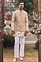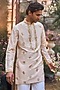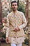 Featuring a multi-colored bundi jacket in linen satin base with pearl, thread and sequins embroidery. It is paired with an embroidered kurta and ivory straight pants. Style it with mojaris for a festive occasion, cultural event, wedding or engagement ceremony.