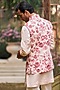 Featuring a multi-colored bundi jacket in raw silk base with threadwork, bugle beads and sequins embroidery. It is paired with an embroidered kurta and ivory straight pants. Style it with mojaris for a festive occasion, cultural event, wedding or engagement ceremony.