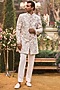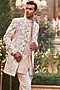Featuring a nude sherwani in raw silk base with dori embroidery. It is paired with a silk kurta, ivory cotton silk straight pants and footwear. Style it with mojaris for a wedding or engagement ceremony.