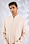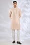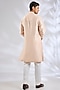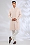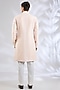 Featuring a nude sherwani in raw silk base with embroidery. It is paired with a cotton silk kurta and cotton lycra churidar pants. Perfect attire for a wedding, sangeet or engagement ceremony.