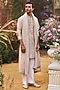 Featuring a nude kurta in raw silk base with french knot, threadwork and sequins embroidery. It is paired with ivory cotton silk straight pants and an organza dupatta. Style it with kolhapuri sandals for a festive occasion, cultural event, wedding or engagement ceremony.