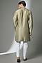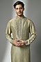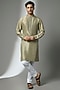 Featuring an olive kurta in silk base. It is paired with pants. Style it with kolhapuri sandals for a festive occasion, mehendi, wedding or engagement ceremony.