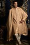 Peach Raw Silk & Silk Sherwani Set