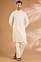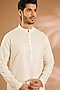 Featuring a white kurta in silk base. It is paired with pants. Style it with kolhapuri sandals for a festive occasion, wedding or engagement ceremony, exuding charm and elegance.