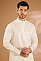Featuring a white kurta in silk base. It is paired with pants. Style it with kolhapuri sandals for a festive occasion, wedding or engagement ceremony, exuding charm and elegance.