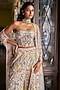 Seema Gujral presents a stunning multi-colored corset blouse in net base with sequins, beads, thread and pearl embroidery. It is paired with embroidered sharara pants and a dupatta. Style this exquisite ensemble with luminous polki jewellery and refined makeup for a timeless look perfect for the most elite engagement soirees.