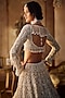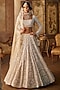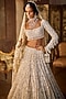 Seema Gujral presents an elegant Nude Lehenga Set crafted in net fabric with pearl and crystal embroidery. It is paired with an embroidered blouse having pearl tassels and full sleeves. The ensemble is paired with an embroidered, scalloped dupatta. Accentuate the designer lehenga with kundan jewellery and embellished heels to turn heads at a wedding, engagement, or sangeet celebration.