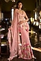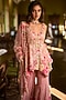Seema Gujral presents a stunning pink asymmetric peplum top in net and tulle base with tassel detail. It is paired with floral three dimensional, sequins and thread embroidered sharara pants and an embroidered dupatta. Style this exquisite ensemble with luminous polki jewellery, a sleek bun and refined makeup for a timeless look perfect for the most elite sangeet soirees.