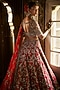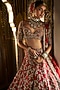 Seema Gujral presents a royal red lehenga in raw silk base with zardosi, pearl and sequin embroidery. It is paired with an embroidered blouse featuring a broad neckline and tassel detailing at the sleeves and hem, including a net dupatta. Style this luxurious red lehenga with layered polki or uncut diamond jewellery, a sleek bun, and minimal makeup to let the intricate craftsmanship shine, perfect for a majestic wedding phera look.