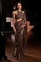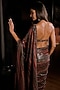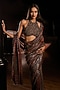 Make a statement with this luxurious vintage wine saree by Seema Gujral. The saree is crafted from georgette featuring tonal sequin embroidery. The saree is paired with an embroidered halter neck blouse and an underskirt. Style this luxurious saree with diamond jewellery and minimal makeup for a perfect, contemporary look.