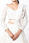 Featuring a white lehenga in net base with embroidery. It is paired with a matching blouse and a dupatta.