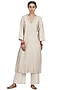 Featuring an ivory kurta in cotton mul base with faridkot print and hand embroidery. It is paired with matching sequinned palazzo pants and an organza dupatta having zari scallops.