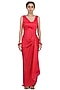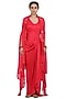 Featuring a strawberry pink high-low draped dress in bemberg satin and cotton mul base. It is paired with a matching organza cape having tonal resham hand embroidery.