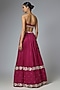 Featuring a berry pink lehenga in chiffon and organza base with embellishments and attached cancan. It is paired with an embellished choli and a dupatta. Accentuate it with statement earrings and heels for a cocktail, sangeet, wedding or engagement ceremony.