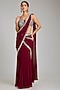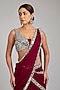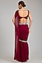 Enhance your wardrobe with this berry pink draped saree crafted in georgette with embellishments. The set includes saree and a blouse. To complete the look, pair it with wedges, statement earrings, and a potli bag for a sangeet or engagement ceremony .