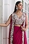 Featuring a berry pink pre-draped saree in georgette and organza base. It is paired with an embellished choli and an embellished jacket. Accentuate it with swarovski jewellery and heels for a wedding or sangeet ceremony.