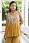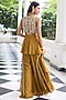 Featuring a brass gold peplum top in organza base with embellishments. It is paired with gharara pants. Accentuate it with polki stud earrings, wavy curls and block heels for engagement, sangeet or haldi ceremonies.