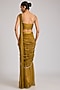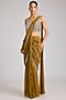 Dark Gold Tissue Embellished Pre-Stitched Saree
