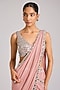 Featuring a dusty pink pre-stitched saree in georgette base with embellishments. It is paired with an embellished choli. Accentuate it with zircon jewellery, heels and a clutch for a sangeet or cocktail ceremony.