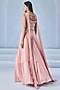 Seema Thukral presents an exquisite dusty pink asymmetric lehenga crafted in an organza base, including a can-can that lend a soft, ethereal charm. It is paired with an embellished blouse and a chiffon dupatta, creating a graceful and contemporary silhouette. Style it with pearl earrings, soft curls, and sleek stilettos for an elegant look at festive celebrations, sangeet nights, or pre-wedding ceremonies.