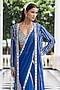 Featuring an electric blue draped saree in georgette and organza base with embellishments. It is paired with an embellished blouse and a jacket. Accentuate it with polki jewellery, wavy curls and block heels for a wedding engagement or sangeet ceremonies.