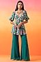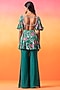 Featuring an emerald green peplum top in crepe base with print and embellishment. It is paired with organza and crepe flared pants. Accessorize it with statement earrings and heels to accentuate your look.