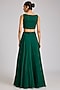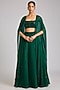 Featuring an emerald green cape in organza base with embellishment. It is paired with a georgette embellished choli and an embellished skirt having cancan. Accentuate it with statement earrings and elegant heels for a stylish ensemble, ideal for cocktail evenings.