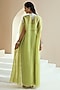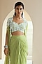Featuring a green cape in organza base with zari, pearls, glass beads and beads hand embroidery. It is paired with a matching georgette blouse and a draped skirt.
