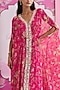Featuring a hot pink draped kaftan in georgette and habutai silk base with print and embellishment. It is paired with pants. Accentuate it with statement jewellery and flats for a festive occasion.