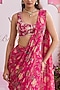 Featuring a hot pink pre-stitched saree in georgette base with print. It is paired with an embellished choli. Accentuate it with swarovski jewellery and heels for a wedding or sangeet ceremony.
