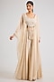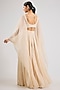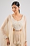 Featuring an ivory choli in georgette base with an attached organza cape and embellishment. It is paired with organza sharara. Accentuate it with statement jewellery and heels for a festive occasion or sangeet ceremony.