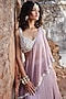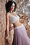 Seema Thukral features a mesmerizing Lilac Tiered Skirt Set that captivates with its elegance. The eye-catching skirt is crafted in chiffon with sequins, pearls, glass beads, zari, pearls and crystal hand embellishment, including an attached cancan. It comes with a georgette embellished choli and an organza-embellished asymmetrical cape. Accessorize the designer skirt set with dangler earrings and heels for destination weddings, showcasing style and sophistication.