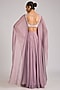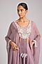 Featuring a lilac choli in georgette base with an attached organza cape and embellishment. It is paired with a sharara. Accentuate it with delicate kundan earrings, a soft-gold clutch and embroidered juttis for a stylish ensemble, ideal for festive celebrations or sangeet ceremony.