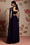 Featuring a midnight blue concept saree in georgette base with slit detail. It is paired with a hand embellished blouse and a chiffon embellished cape. Accentuate with statement jewellery and heels for sangeet ceremonies or cocktail parties.