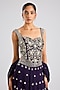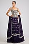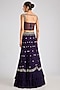 Featuring a midnight blue lehenga in georgette base with hand and machine embellishment, including can-can detail. It is paired with an embellished corset and an organza dupatta. Accentuate with statement jewellery, potli bag and block heels for a wedding, cocktail or sangeet ceremonies.
