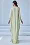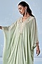 Seema Thukral presents an exquisite mint green kaftan crafted in chiffon base, adorned with delicate embellishments that lend a soft, ethereal charm. Style it with pearl earrings, soft curls, and sleek stilettos for an elegant look at festive celebrations, sangeet nights, or pre-wedding ceremonies.