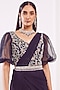 Featuring a midnight blue draped saree in georgette base. It is paired with a matching blouse having puffed organza sleeves, glass beads, crystal, and sequins hand embroidery, and a belt.